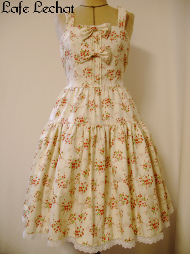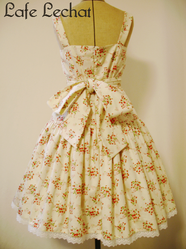 今回、トルソーには新作のジャンパースカート(生×苺柄)を展示しておりました。