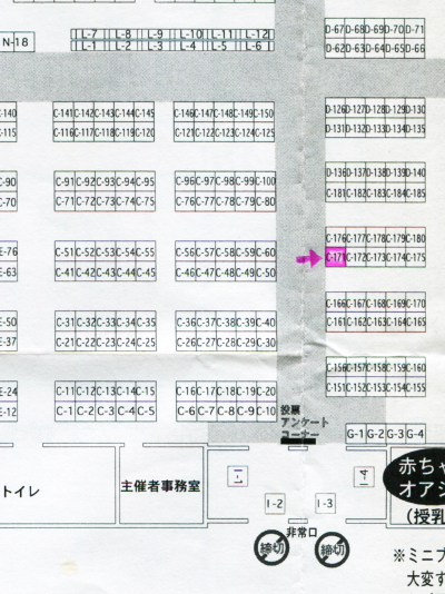 当日は、いつも参加している「コミックライブ」もポートメッセ名古屋1号館にて行われておりますが、今回は 「クリエイターズマーケット」(3号館)への参加です。